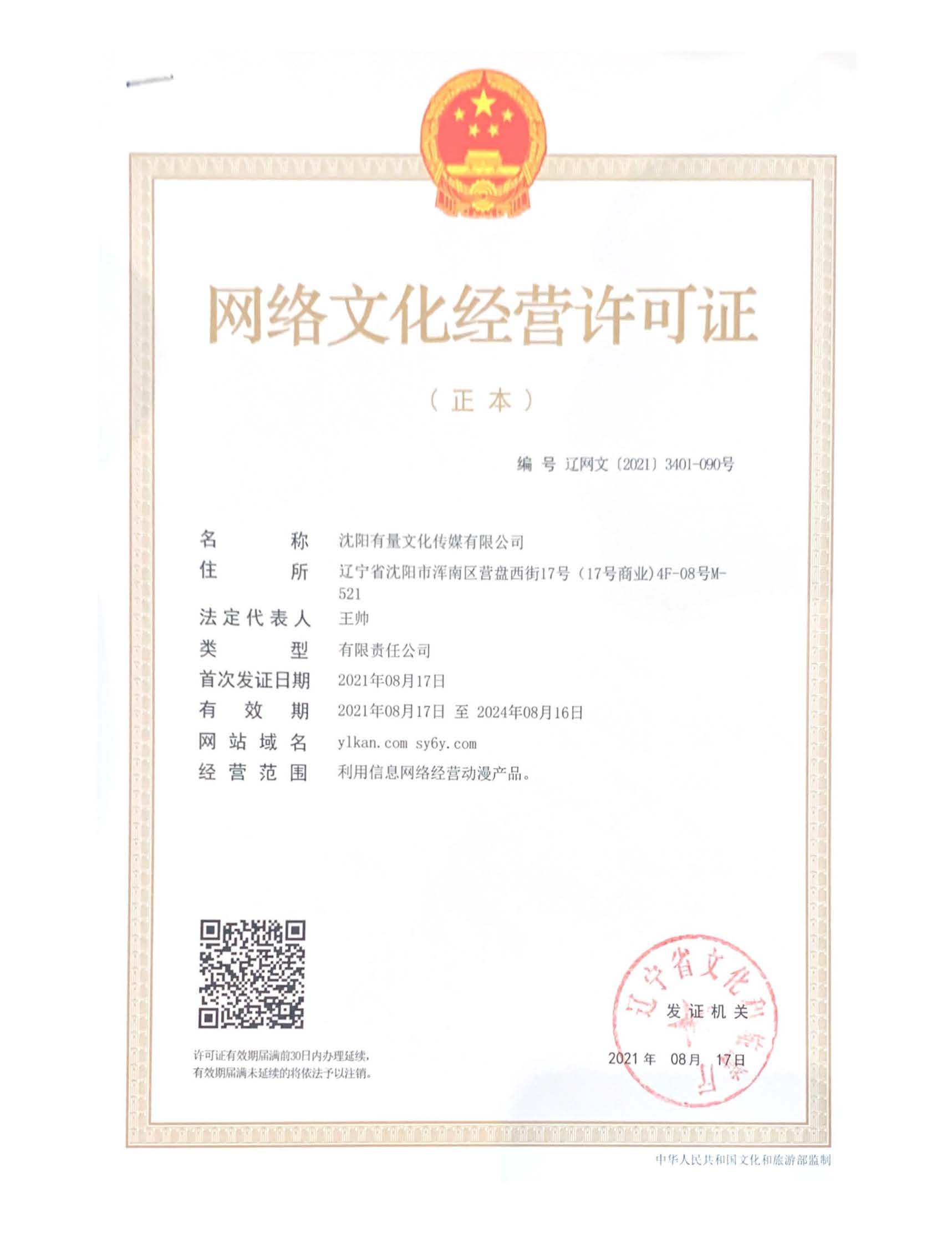 Copyright (C) 2022 沈陽有量文化傳媒有限公司 公司備案號:遼ICP備2021006768號-4 網(wǎng)絡(luò)文化經(jīng)營許可證編號 遼網(wǎng)文(2024)3556-587號 營業(yè)執(zhí)照